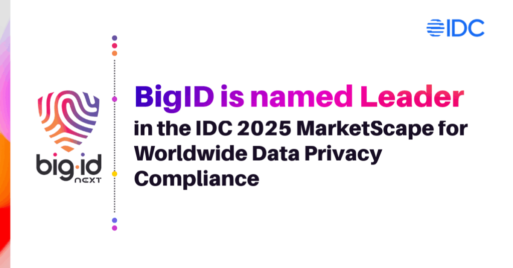BigID has been recognized as a Leader in the 2025 IDC MarketScape for Worldwide Data Privacy Compliance Software – recognizing BigID as one of the top-performing platforms for AI-powered data privacy, compliance, and governance. This recognition cements BigID’s position as the go-to platform for enterprises that want to modernize privacy with automation, intelligence, and scale.
