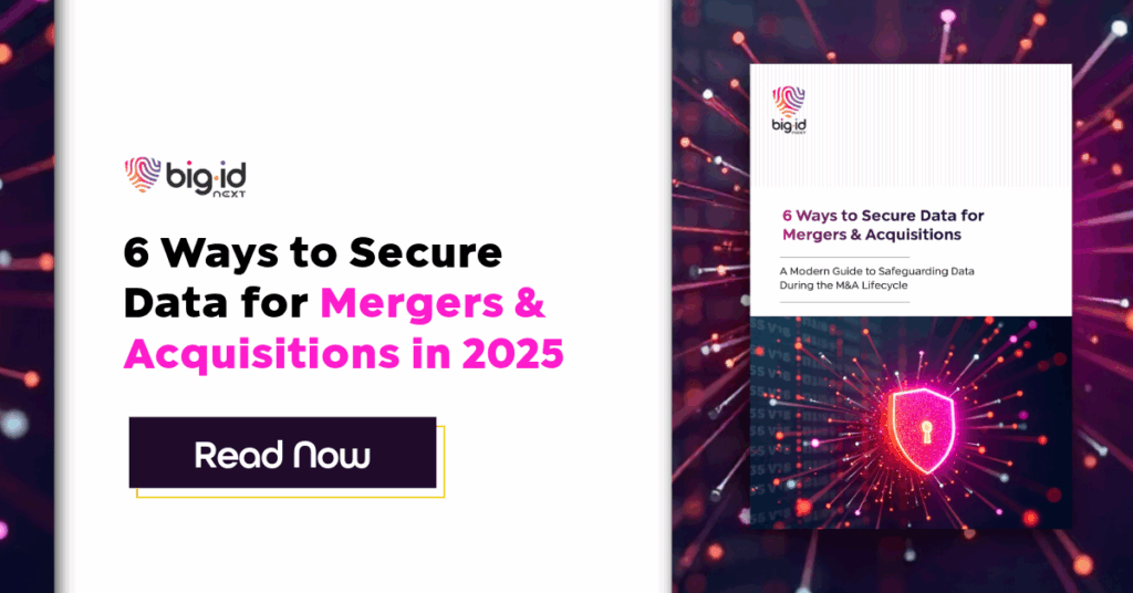 Modern M&A isn’t just about financial synergy — it’s about data synergy. With BigID, organizations can bring together two (or more) complex data ecosystems with confidence, speed, and security. By making data visibility, governance, and compliance the foundation of the integration process, companies can protect value, reduce risk, and accelerate post-merger success.