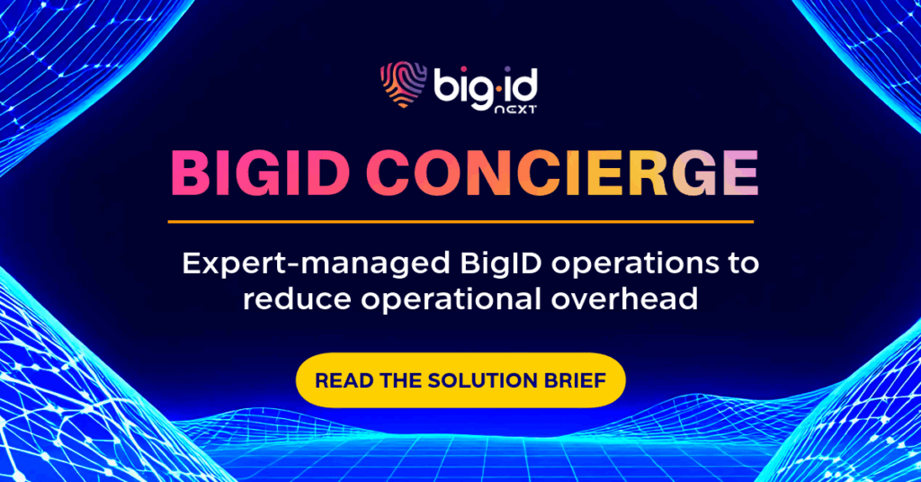 BigID Concierge™ reflects BigID’s focus on helping customers turn data intelligence into action. By extending teams with hands-on expertise, BigID Concierge™ helps organizations keep data security, privacy, and AI programs moving forward — without slowing down, adding headcount, or losing focus.