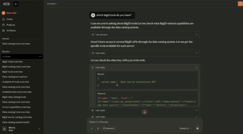 The MCP Server connects BigID’s enterprise metadata to AI environments like Claude — securely, intelligently, and with full governance.
