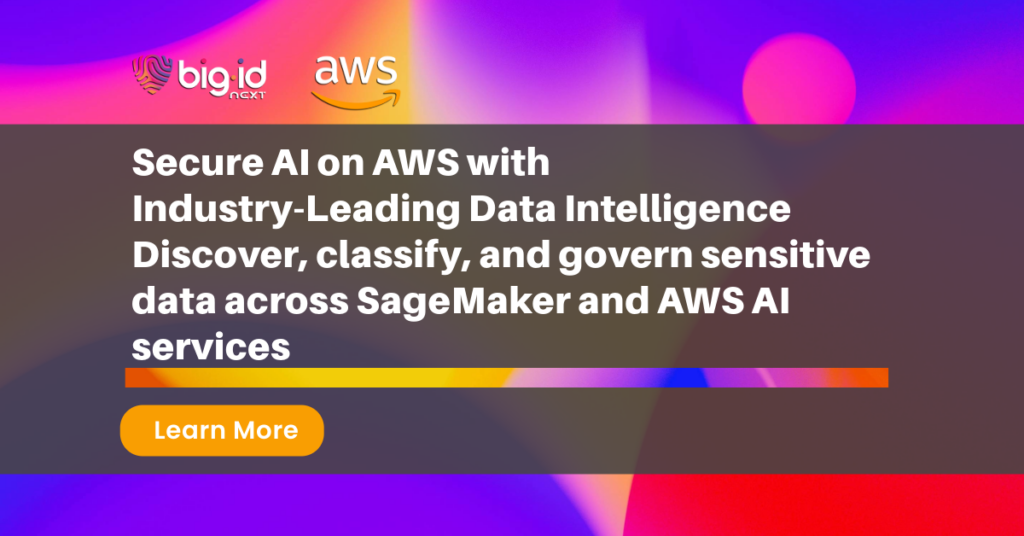 BigID is proud to be a launch partner for the AWS Data & AI Governance and Security initiative. As the industry leader in AI data security and governance, BigID brings deep visibility, control, and intelligence to data powering large language models (LLMs). With our new native connector for Amazon SageMaker, organizations can automatically discover, classify, and contextualize the training data behind their AI models – pinpointing where personal and sensitive data lives, how it’s used, and where it may pose risk.