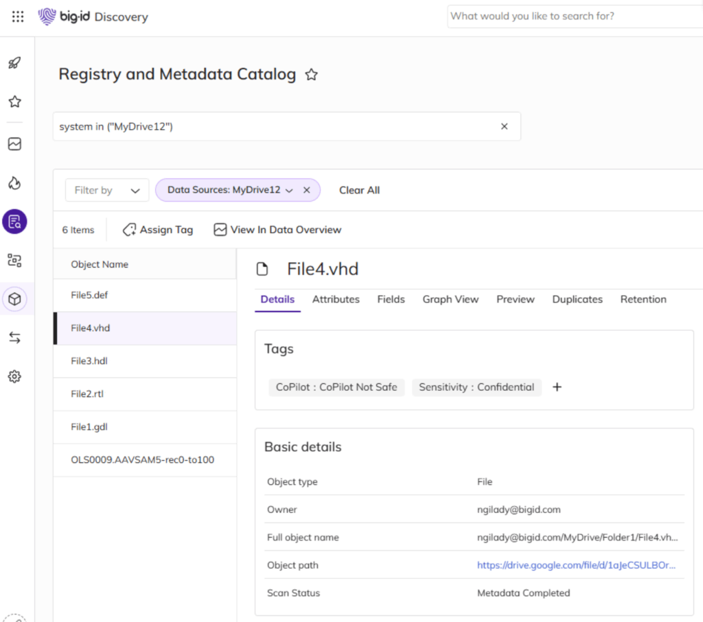 With advanced metadata scanning, automated sensitivity labeling, access intelligence, and data activity monitoring, BigID delivers visibility where legacy tools fall short. Teams can automatically detect CAD, CAM, and EDA files — even when extensions are changed — apply consistent labels, monitor access, and remediate exposure across design environments