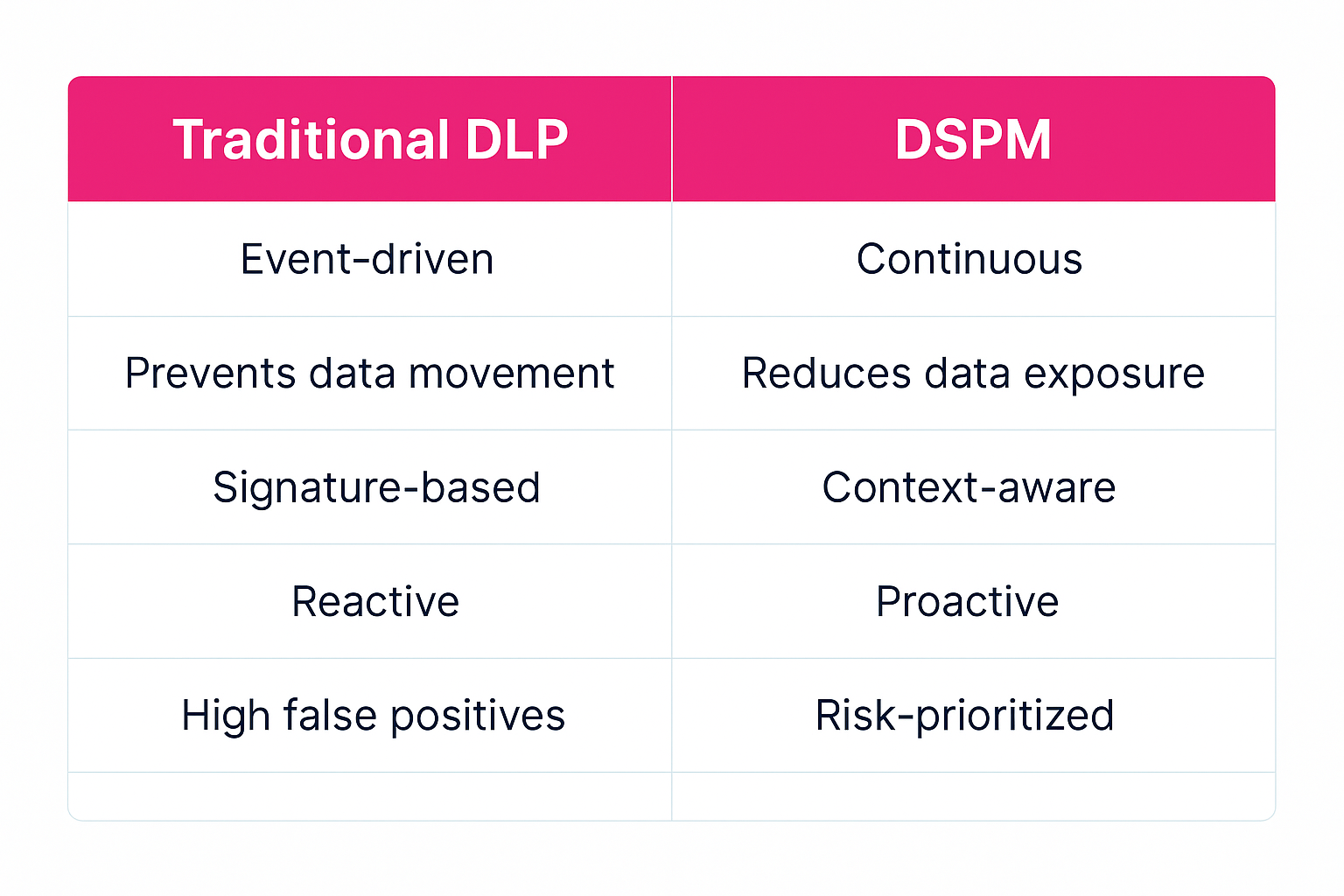 DSPM fills the critical gaps traditional DLP missesâdelivering real-time visibility, risk prioritization, and automated action.