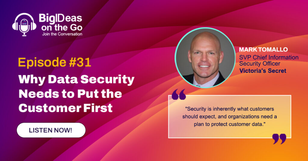 Mark Tomallo, SVP Chief Information Security Officer of Victoria’s Secret, joins BigIDeas on the Go to talk about data security in retail, how companies should be prioritizing the security of their customer’s data, and trends we should expect to see as organizations mature in their data handling.