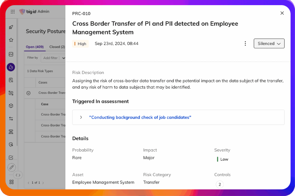 BigID helps translate technical controls into executive visibility, providing dashboards, metrics, and evidence-ready reports for certifications and board reviews.