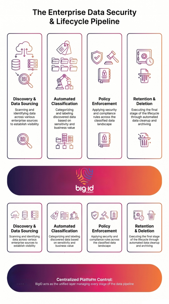 BigID delivers a unified platform to manage the entire data lifecycle—from discovery to deletion—across all data environments.
