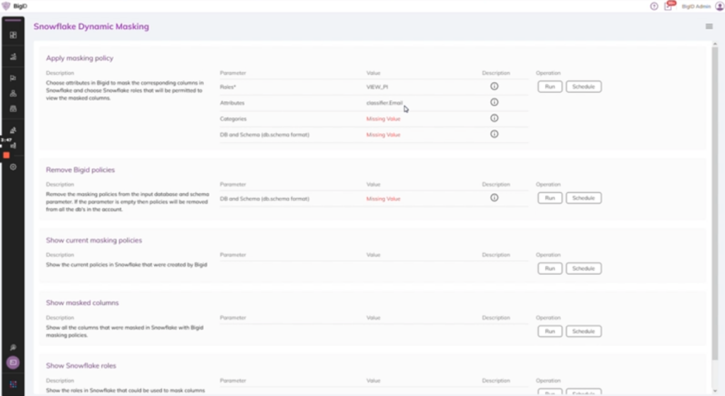 Erzwingen Sie den Datenzugriff nativ und Maskierung innerhalb der Data Cloud von Snowflake mit umfassender Datenintelligenz von BigID.