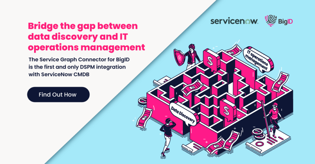 BigIDs branchenführende Plattform für Datentransparenz, Kontext und Kontrolle ist die Grundlage für die erste und einzige DSPM-Lösung, bietet einen ServiceGraph Connector für ServiceNow. Diese bahnbrechende Integration schließt die Lücke zwischen Datenermittlung und IT-Servicemanagement und bietet beispiellose Transparenz und Kontrolle über die Datenlandschaft eines Unternehmens.