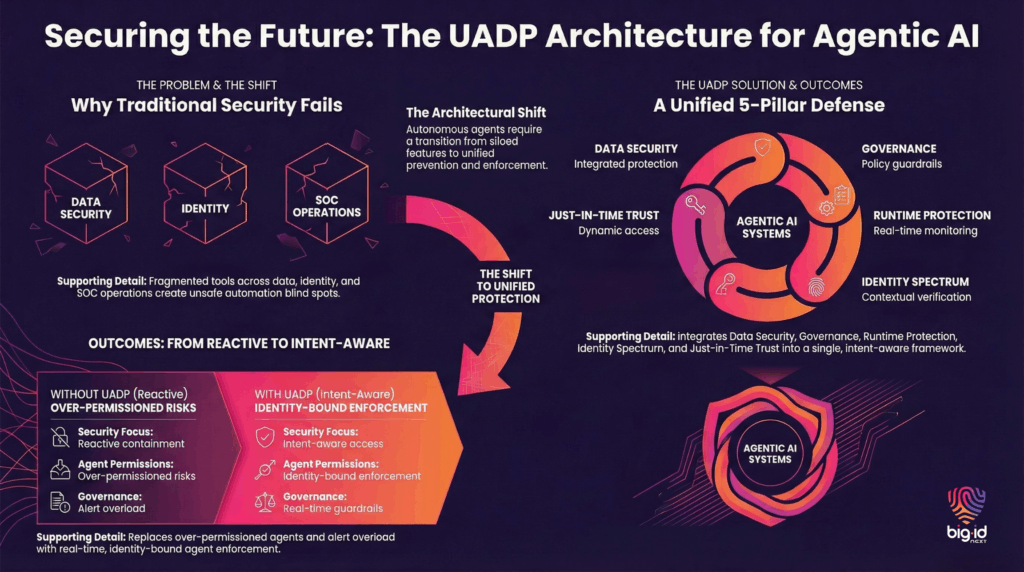 Eine einheitliche Plattform für die Abwehr von Agenten (UADP), ein Begriff, der vom Analystenteam eingeführt wurde bei Softwareanalyst Cyberforschung, Es handelt sich um eine neuartige Sicherheitsarchitektur, die das gesamte Spektrum der Anforderungen an die Absicherung agentenbasierter KI-Systeme abdeckt. Da autonome Agenten zunehmend auf Daten zugreifen, Entscheidungen treffen und Maßnahmen ergreifen können, ist KI-Sicherheit keine eigenständige Funktion mehr – sie erfordert einheitliche Prävention, Steuerung und Echtzeit-Durchsetzung über verschiedene Bereiche hinweg.