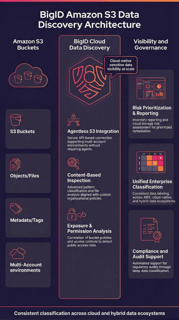 S3 speichert verschiedene Dateitypen in verteilten Buckets. BigID analysiert: