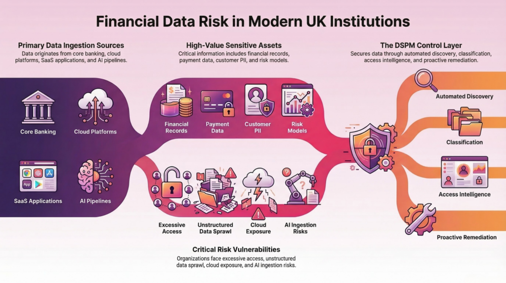Gestión de posturas de seguridad de datos (DSPM) Esto proporciona a las instituciones financieras la visibilidad y el control necesarios para responder a esas preguntas.
