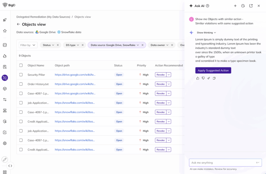 - Trigger native remediation actions: revoke access, mask values, delete toxic data, and more