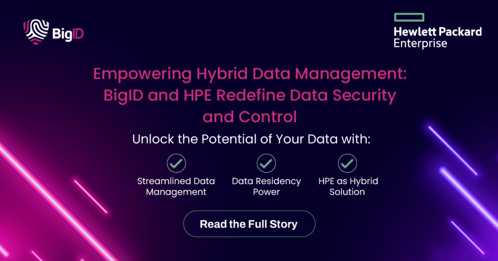 BigID, líder em descoberta de dados A BigID e a Hewlett Packard Enterprise (HPE), líder em soluções de nuvem híbrida, uniram forças para redefinir a forma como as empresas aproveitam o potencial de seus dados. A BigID tem o prazer de anunciar a expansão de nossa parceria por meio de uma validação com HPE GreenLake para Nuvem Privada Empresarial.